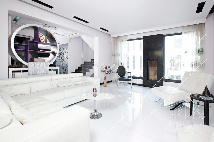 GLYFADA Center, Unique Duplex, 500 sq.m., Basement - Semi-Basement - Ground Floor -1st - 2nd Floor, 5 Bedrooms (3 Master), Large Living Room, 2 Large Kitchens, Dining Room, 4 Bathrooms, 3 W.C., Hamam, Jacuzzi, Playroom, Laundry Room, Walk-In Closet, Bowling Room, Autnomous Heating, A/C, 2 Fireplaces, 3 Security Doors, Alarms, Security Cameras, TV Door Phone, Built-In Miele Electrical Appliances, Solar Water Heater, Boiler, Indoor Elevator, Indoor Staircase, Close Parking, Storage Room, Common Use Pool, Garden, Common Use BBQ, Large Verandas, Sea View, Aluminum Window Frames, Tripl Glazed Windows, Wooden Floors, Excellent Condition, Luxurious Contruction, Minimal Aesthetic, Great Location, Bright, Ask us for Availability, Price 2.500.000 Euros (Listing Code: 2009).