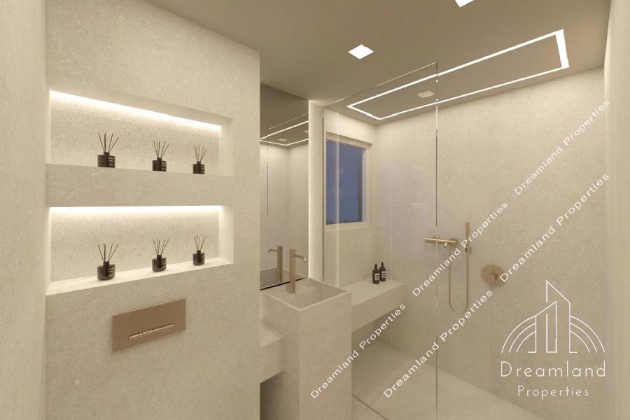 ALIMOS, Newly-Built Luxurious Whole-Floor Apartment 100 sq.m., 3rd Floor, 3 Bedrooms (1 Master), 2 Bathrooms, Large Living Room - Dining Area, Spacious Kitchen, Autonomous Underfloor Heating with Heating Pump, Fireplace, Solar Water Heater, A/Cs, Common Use of Garden and Swimming Pool, Security Door, 1 Parking Spot, Luxurious Construction, Under Construction, Bright, Price 470.000 Euros (Listing code: 3808).