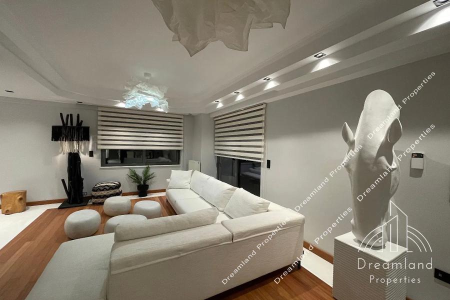 GLYFADA, Golf, Luxurious Detached House 270 sq.m., Basement - Ground Floor - 1st Floor, 4 Bedrooms (1 Master), Furnished, Large Living Room, Spacious Separate Kitchen, 2 Bathrooms, 2 W.C., Renovated in '23, Autonomous Heating with Petrol, Fireplace, A/Cs, Aluminum Window Frames, Double Glazed Panes, Security Door, Internal Staircase, Elevator, Private Garden and Swimming Pool, Jacuzzi, Unlimited Sea View, Close to the Beach, Nice Location, Quiet Area, Price 2.000.000 Euros (Listing code: 4060).