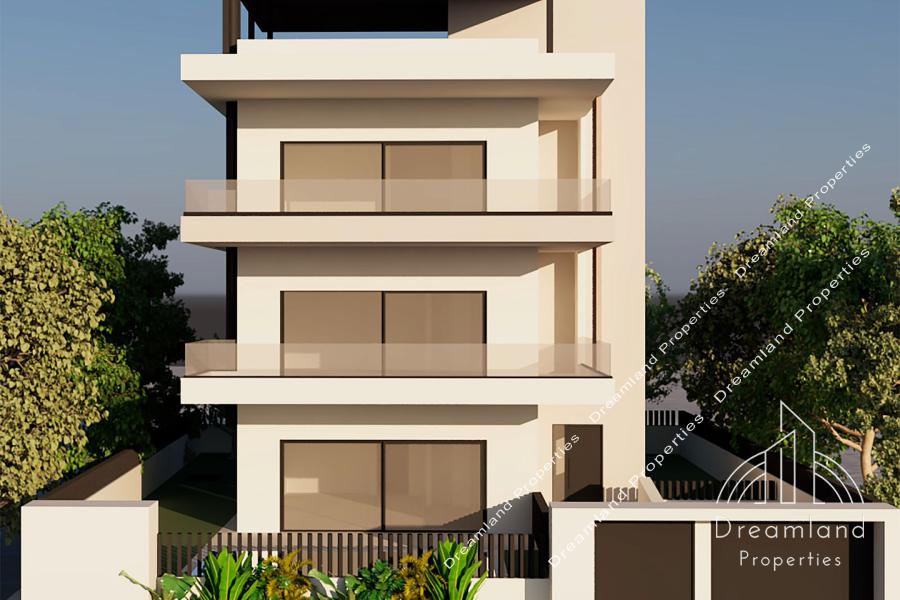 GLYFADA Aixoni, Newly- Built Luxurious Apartment 95 sq.m., 1st Floor, 2 Bedrooms, Open Plan Large Living Room - Kitchen, 1 Bathroom, W.C., Autonomous Underfloor Heating with Heating Pump, Air Conditioning, Fireplace, Solar Water Heater, Security Door, 2 Underground Parking Spots, Storage Unit, Large Verandas, Aluminum Frames, Double Glazed Windows, Wooden Floors, Luxurious Construction, Minimal Aesthetics, Under Construction, Price 700.000 Euros (Listing code: 4275).
