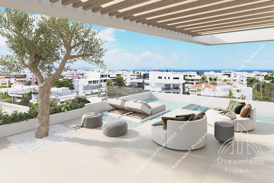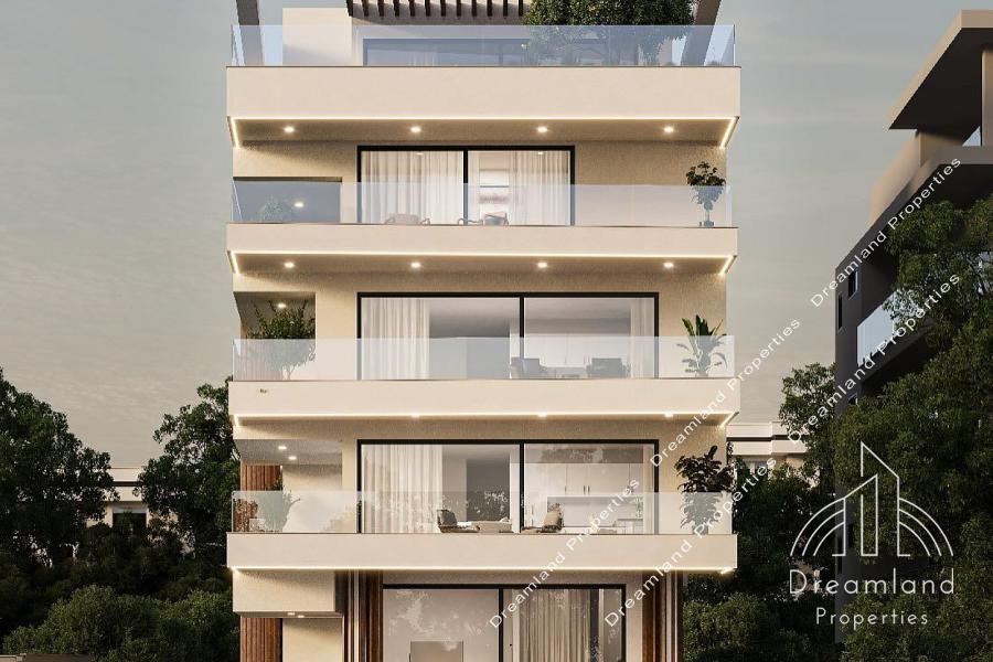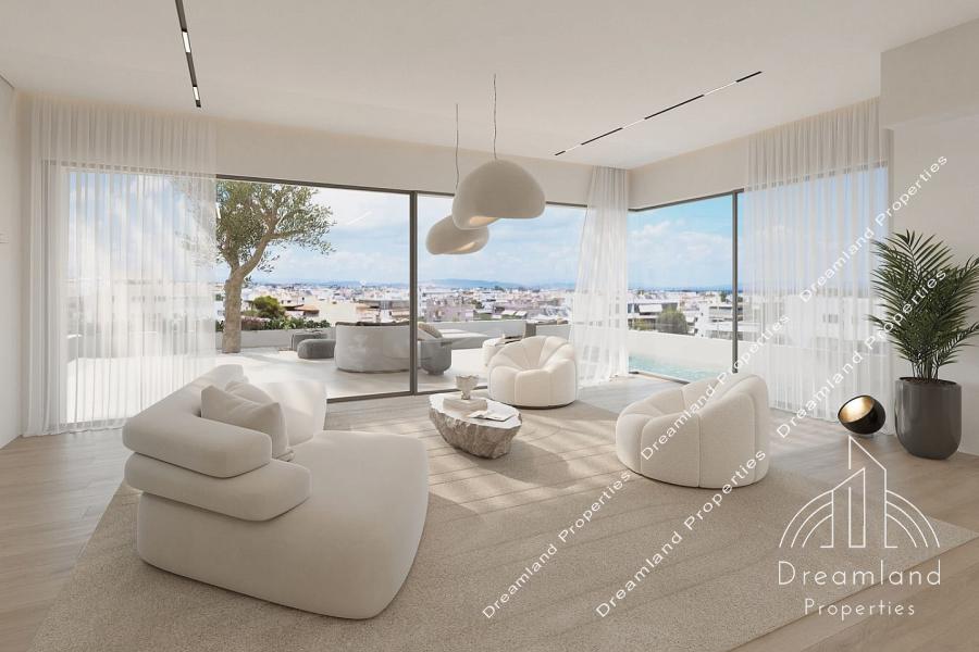 GLYFADA Center, Newly-Built Luxurious Whole-Floor Apartment 206 sq.m., 4th - 5th Floor, 4 Bedrooms (2 Master), 3 Bathrooms, W.C., Large Living Room - Dining Area, Spacious Kitchen, Autonomous Underfloor Heating with Heating Pump, A/Cs, Fireplace, Solar Water Heater, Security Door, Large Verandas, 2 Underground Parking Spots, Storage Unit, Luxurious Construction, Under Construction, Bright, Price 3.250.000 Euros (Listing code: 4454).