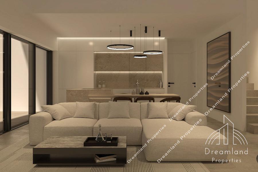 GLYFADA South, Newly Built Luxurious Maisonette 56 sq.m., 2nd - 3rd Floor, 1 Bedroom, Open Plan Large Living Room - Kitchen, 1 Bathroom, Autonomous Underfloor Heating with Heating Pump, Air Conditioning, Security Door, Internal Staircase, Large Verandas, 1 Underground Parking Spot, Aluminum Frames, Double Glazed Windows, Wooden Floors, Luxurious Construction, Minimal Aesthetics, Top Location, Under Construction, Price 394.240 Euros (Listing code: 4516).