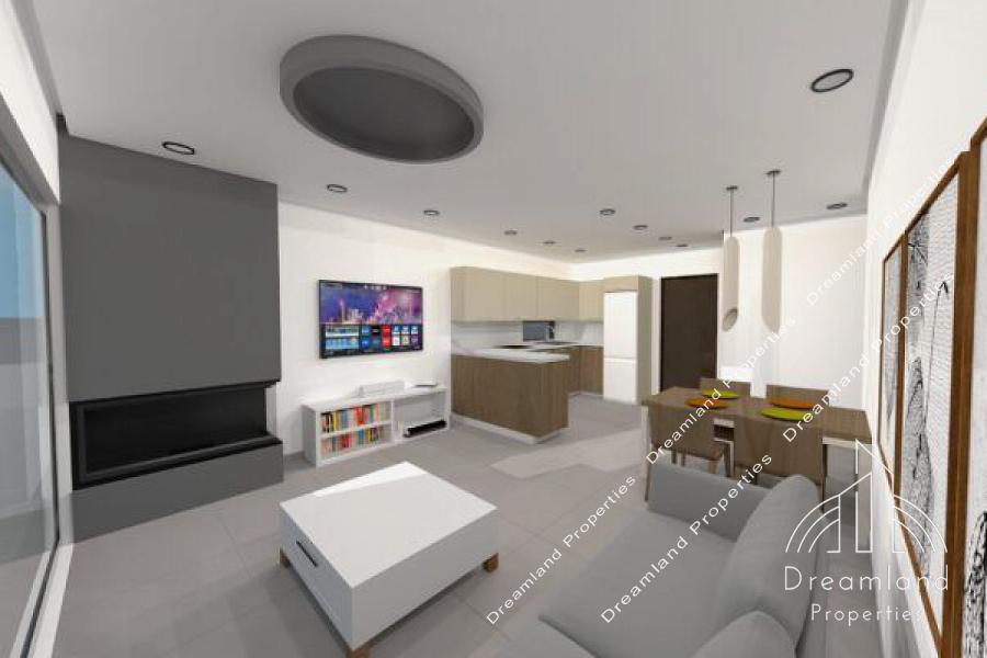 GLYFADA Terpsithea, Newly-Built Luxurious Maisonette 122 sq.m., 3rd - 4th Floor, 3 Bedrooms, 2 Bathrooms, Large Living Room - Dining Area, Spacious Kitchen, Autonomous Underfloor Heating with Heating Pump, A/Cs, Energy Fireplace, Solar Warer Heater, Security Door, Internal Staircase, Large Verandas, Common Use Swimming Pool and BBQ, 1 Underground Parking Spot, Storage Unit, Luxurious Construction, Under Construction, Bright, Price 664.900 Euros (Listing code: 4541).