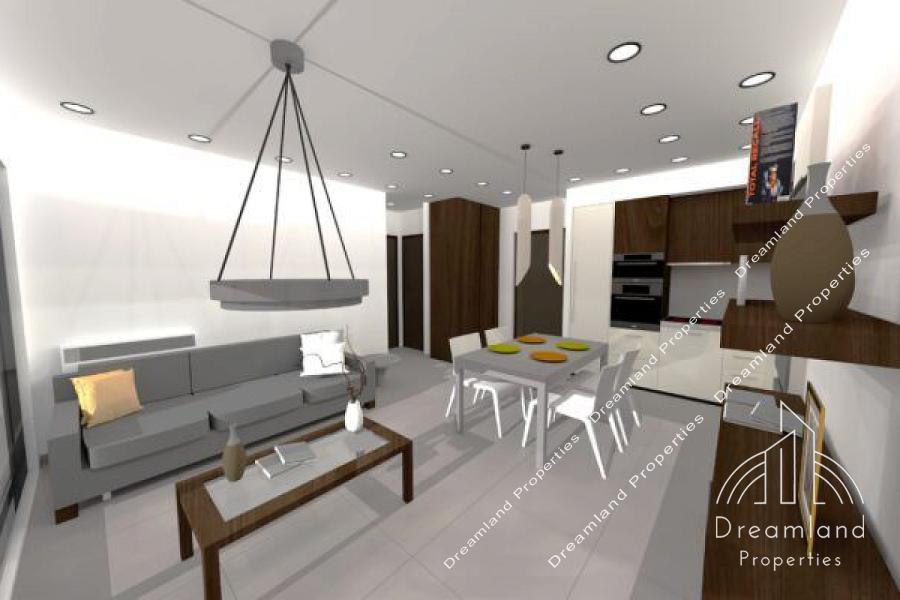 GLYFADA Terpsithea, Newly-Built Luxurious Apartment 69 sq.m., 1st Floor, 2 Bedrooms, 2 Bathrooms, Large Living Room - Dining Area, Spacious Kitchen, Autonomous Underfloor Heating with Heating Pump, A/Cs, Solar Warer Heater, Security Door, Large Verandas, Common Use Swimming Pool and BBQ, 1 Underground Parking Spot, Storage Unit, Luxurious Construction, Under Construction, Bright, Price 362.775 Euros (Listing code: 4543).