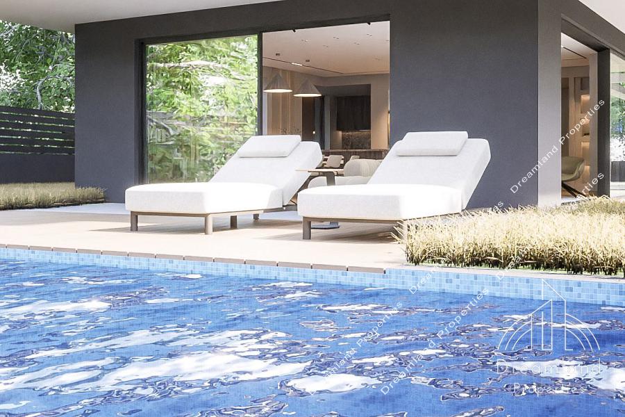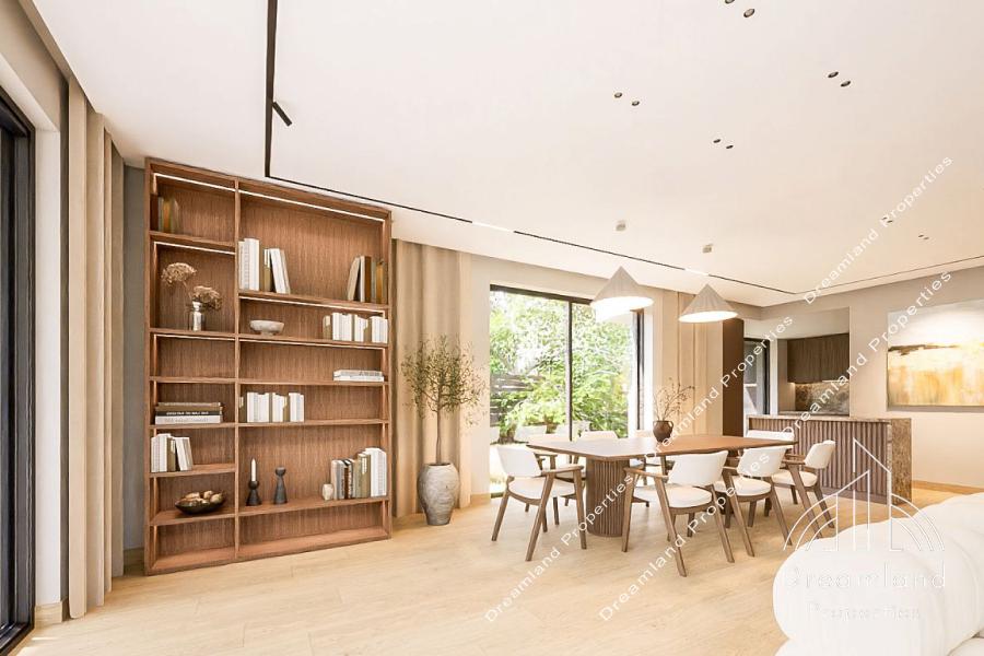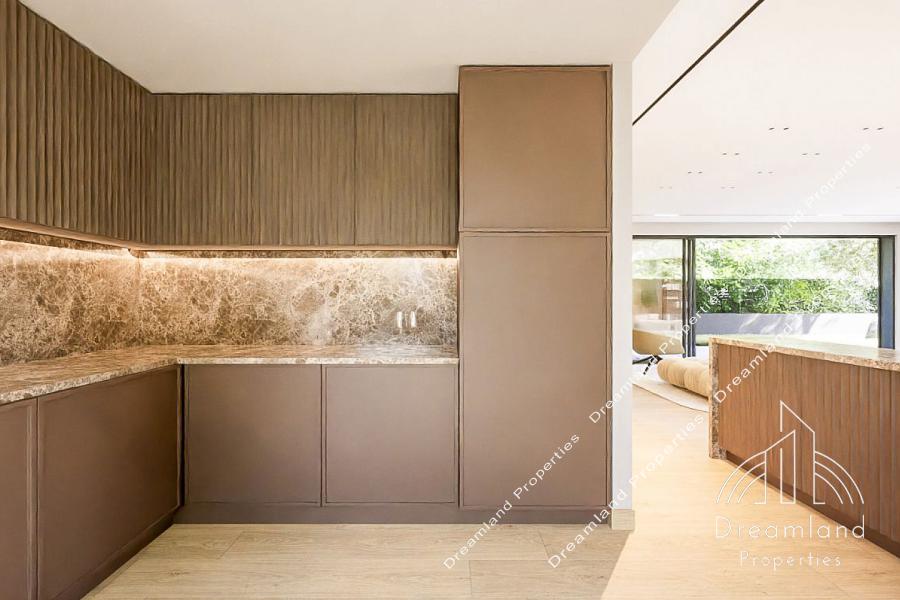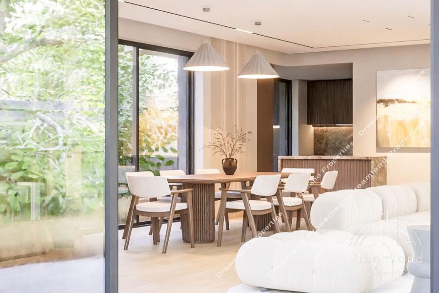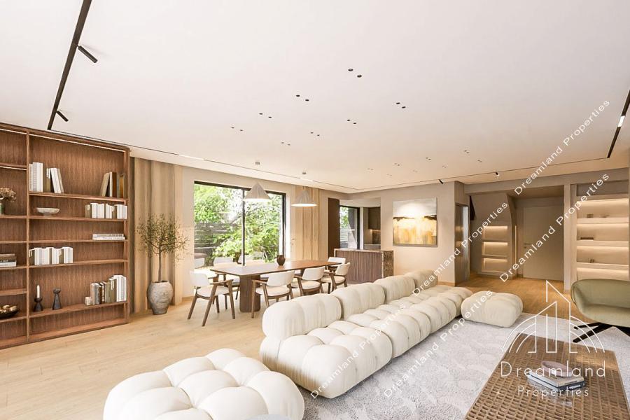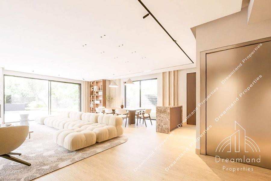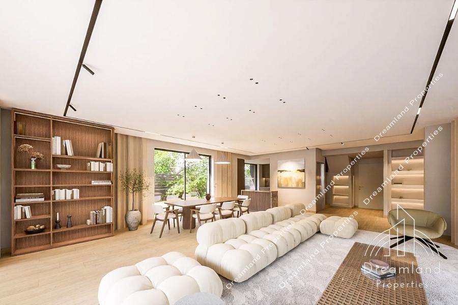 VOULA Center, Newly Built Luxurious Maisonette 184 sq.m., Ground Floor - 1st Floor, 3 Master Bedrooms, Open Plan Large Living Room - Kitchen, 3 Bathrooms, W.C., Autonomous Underfloor Heating with Heating Pump, Air Conditioning, Security Door, 2 Underground Parking Spots, Storage Unit, Private Garden 227 sq.m. and Swimming Pool, Internal Elevator, Aluminum Frames, Double Glazed Windows, Wooden Floors, Luxurious Construction, Minimal Aesthetics, Under Construction, Price 2.000.000 Euros (Listing code: 4547).